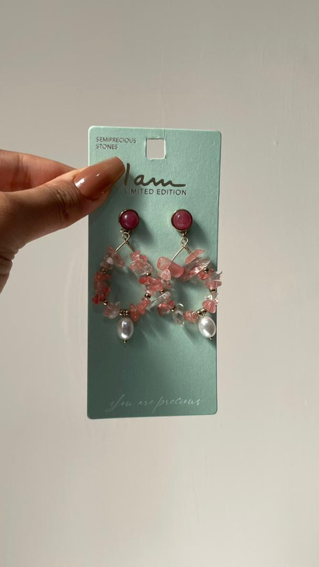 گوشواره زنانه مدل سنگ های طبیعی و مروارید