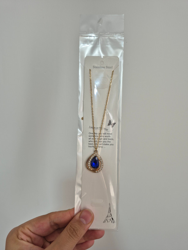 گردنبند زنانه مدل جواهری با نگین آبی